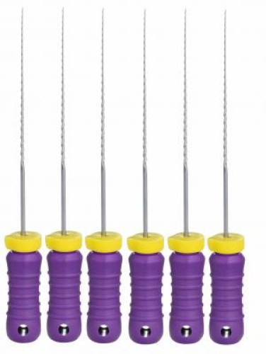 Благодаря длине 25 мм, Н-файлы № 10 могут использоваться при работе с изогнутыми каналами. Рабочая часть изготовлена из никель-хромовой нержавеющей стали, инструмент удерживается за удобную рукоятку из пластика.